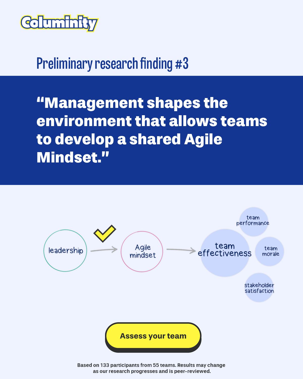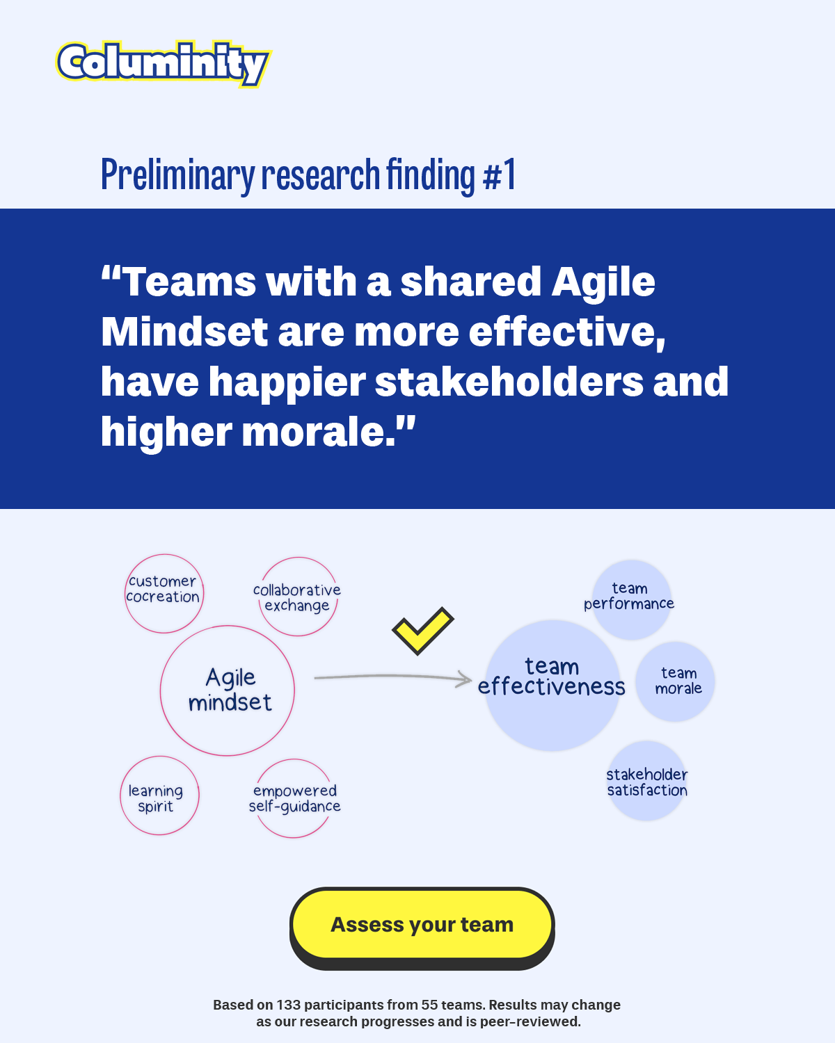 If you find research such as this valuable, please contribute to it yourself or encourage others to do so. The best way to contribute is to scan the Agile Mindset of teams in your organization through Columinity. You can participate with full anonymity. No account and no payment is needed. We use anonymized data for our scientific research.