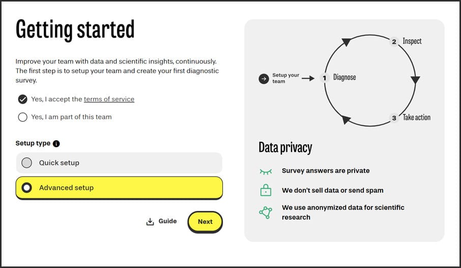 A full scan in Columinity takes about 15-20 minutes to complete per participant. Regardless of the usefulness of such a scan, people don't generally like filling out surveys. Sometimes, teams follow the cadence typical for other organizational surveys; once or twice per year. Unfortunately, this introduces many downsides which often encourage teams to be even less inclined to participate: