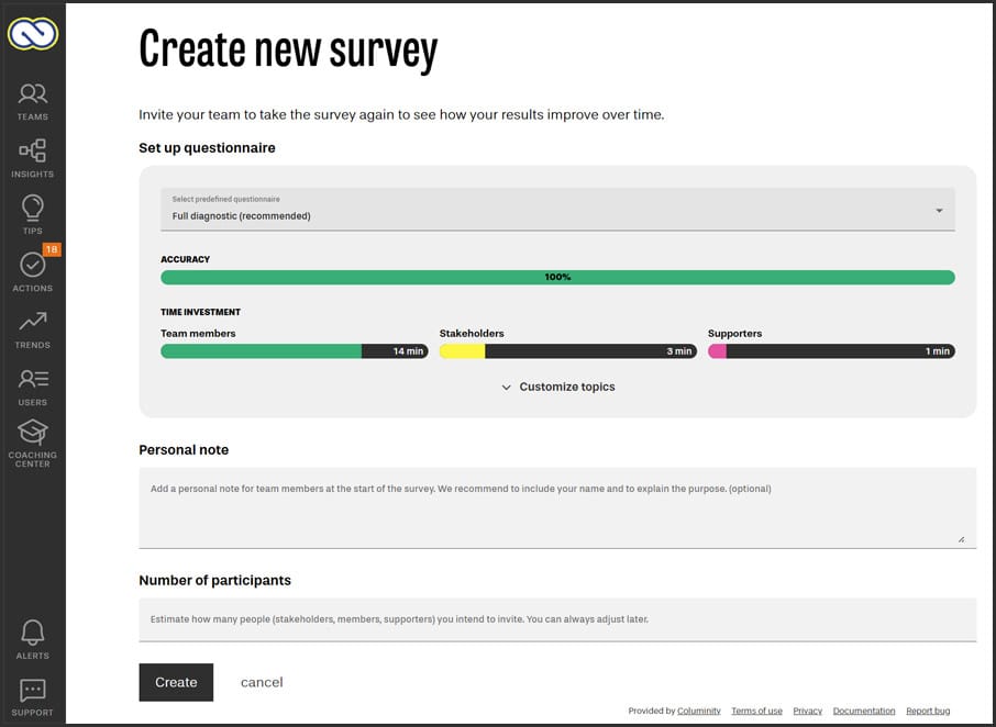 Columinity offers extensive options to customize surveys. While this post focused on topics, you can also customize invitations, who to invite and even the color palette and logos we display in Columinity. Find more details about this in our Wiki.